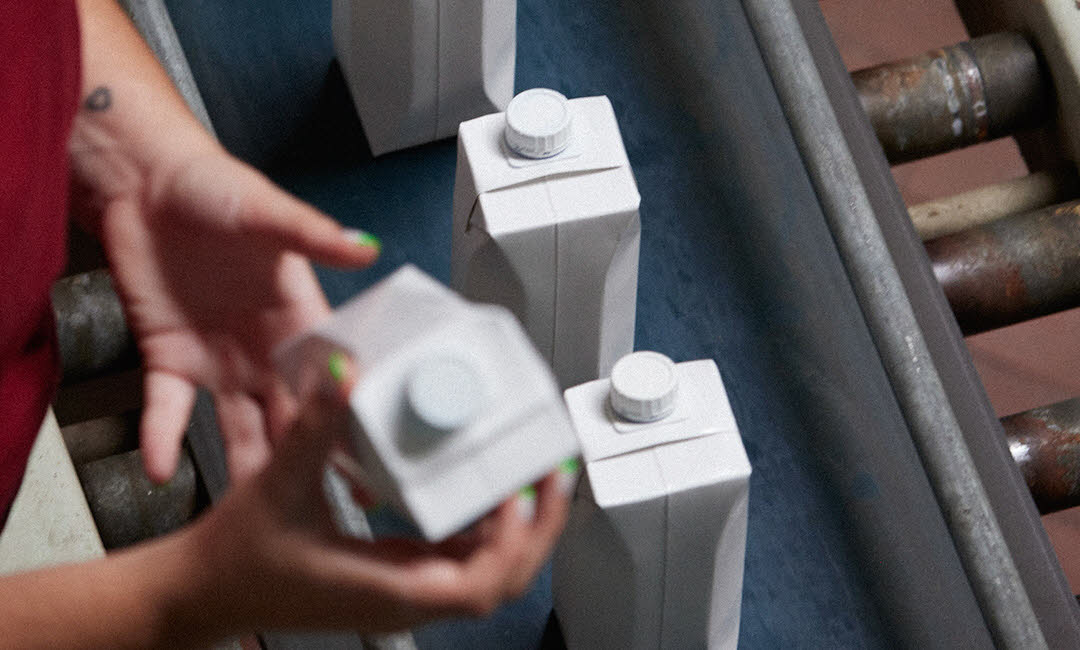 Pappförpackning ger minst klimatpåverkan. Mindre energi vid tillverkning och lätta att packa vid transporter. Bevarar dryckens egenskaper bra då inget ljus släpps in.